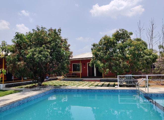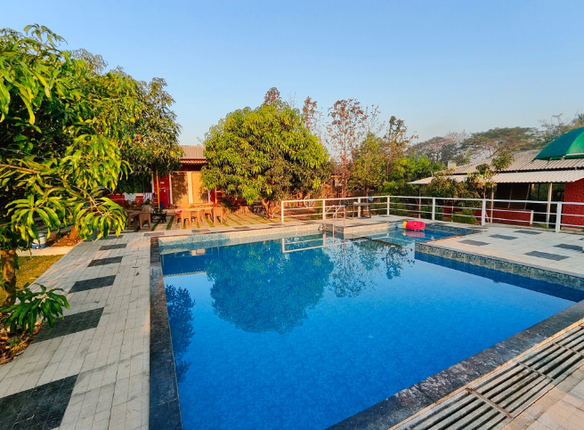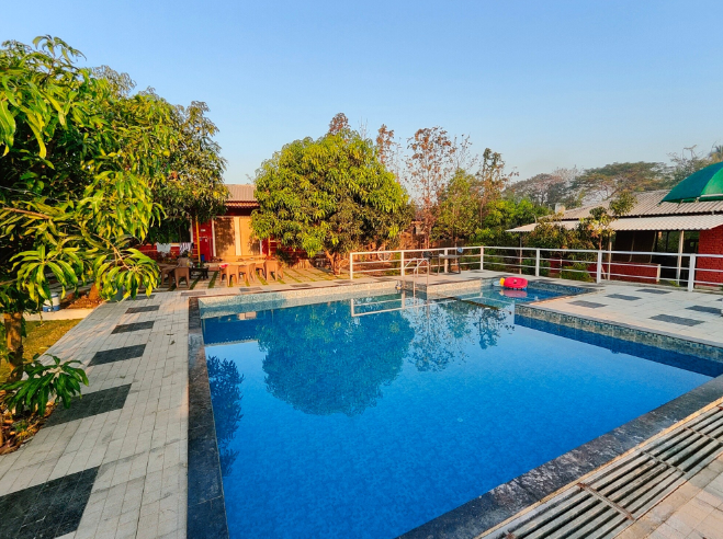 farmhouse is a great choice for travellers looking for Fun , Suitable For Groups And Family , Private Pool , Food, Farm is a perfect property for a weekend getaway with family and friends. The Food & Dining is excellent with fresh and delicious meals Farm house are available at low prices. Hill view farm house near Karjat with pool.
